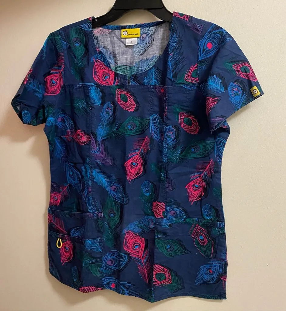 Embrace vibrant style with this colorful feather print women's top. Perfect for adding a pop of color to your wardrobe. Excellent condition with no fading, wear, stains or damages Pit to pit across is 19” across for bust measurement of 38” Length 25” 100% Cotton