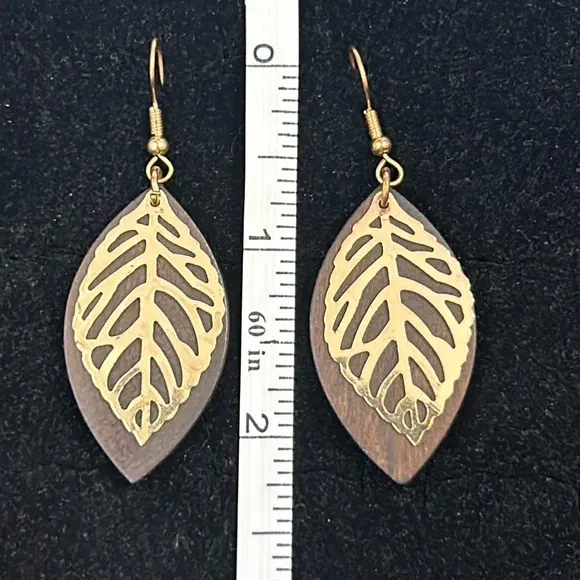 💎Wooden and gold tone lightweight leaf earrings💎 Brown - $5 - From Kimmy