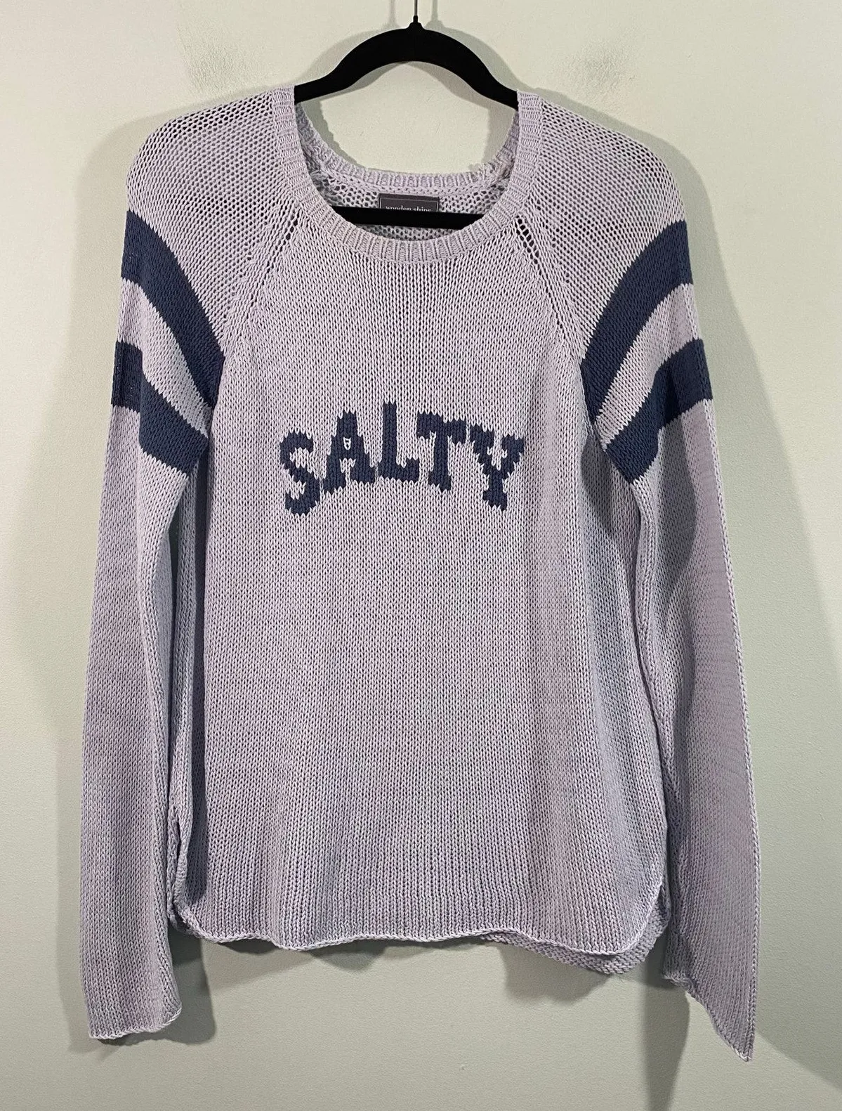 Wooden Ships Women Slipstream Blue "Salty" Knit Sweater - Size M/L - Excellent pre-owned condition - Measurements: armpit to armpit: 18, length: 26.5, sleeve length: 27 All measurements were taken with product flat lay Please refer to pictures for material content Feel free to contact me for more pictures or questions