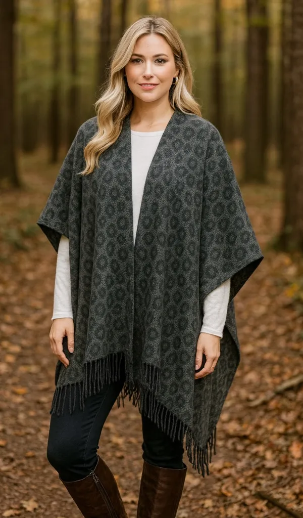 Woolrich Black, Gray & Tan Fringe Blanket Wrap Poncho One Size Fits Most - $28 - From Thrifty