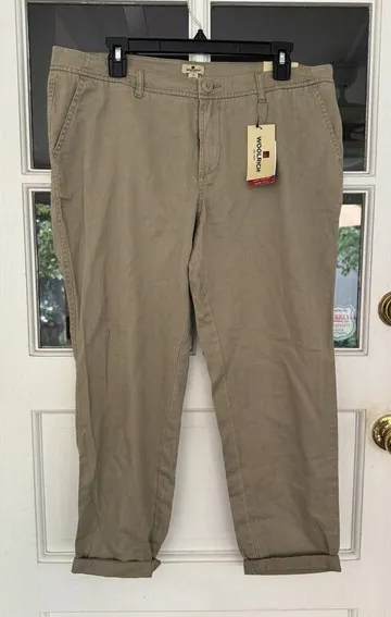 #75-0/1498-1 Elevate your casual wardrobe with these classic Woolrich Sunday Chino Pants. The khaki beige color and solid pattern make them a versatile choice for any occasion. The pants feature a zip closure and flat front for a comfortable fit. Crafted from durable cotton canvas fabric, these pants are built to last. The mid-rise and straight leg style provide a flattering look. The ankle length and crop feature add a touch of modernity to the classic design. Perfect for winter, summer, fall, or spring, these pants are a must-have for any fashion-conscious woman.