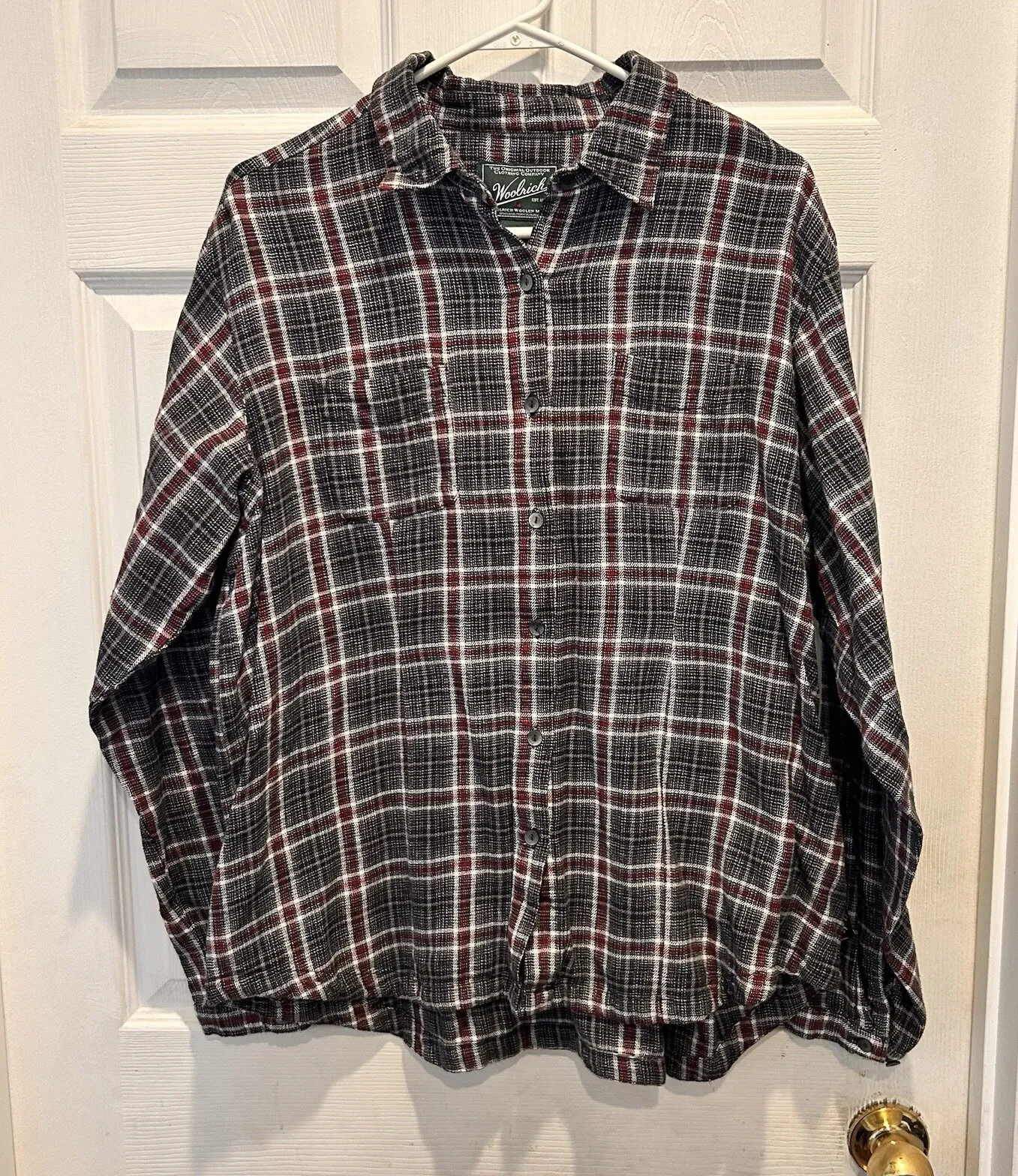 EUC. No flaws. Minimal washwear. Super soft cotton flannel. Long sleeve. UA to UA 25" Length 26" Measured flat and approximate Type: Button-Up Department: Women Style: Basic Material: 100% Cotton Neckline: Collared Sleeve Length: Long Sleeve Sleeve Type: Classic/Fitted Sleeve Pattern: Plaid Accents: Button Features: Easy Care Fit: Regular Fabric Type: Flannel Occasion: Casual, Workwear Closure: Button Season: Fall, Winter, Spring Keywords: Woolrich shirt, plaid shirt, button up, long sleeve, cotton, womens XL, outdoor, casual, flannel, heritage, classic, workwear