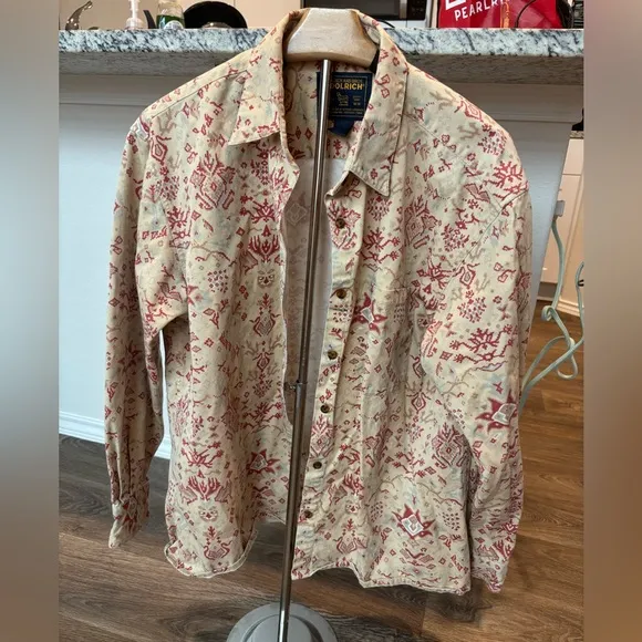 A classic vintage-inspired gem! This Woolrich button-up features a bold Southwestern/Navajo Aztec pattern in earthy tones, perfect for layering or wearing on its own. Made of soft 100% cotton, it offers comfort, durability, and timeless style. Details: • Brand: Woolrich • Style: Button-up shirt • Pattern: Southwestern / Navajo / Aztec • Size: Women’s Large • Material: 100% Cotton • Condition: Gently used – no holes, stains, or flaws • Fit: Relaxed, unisex vibe – perfect for styling oversized Ideal for Westerncore, boho, or cozy looks.