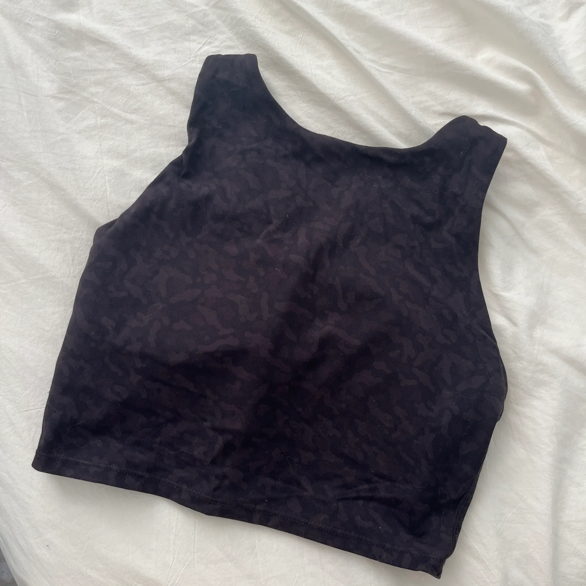 high neck longline workout top with built in bra / padding • only worn once • size tag is cut off but it’s a small (does run tight) • dark purple with light leopard print Tags: lululemon crz yoga alo yoga gymshark
