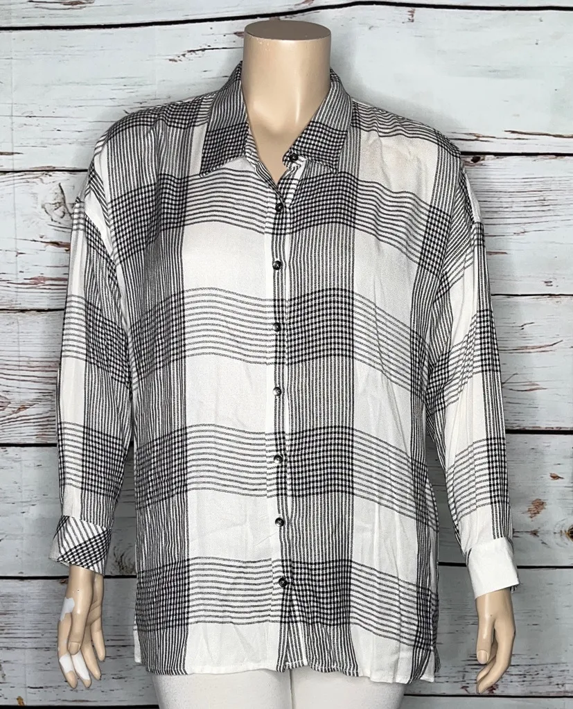 Workshop Republic Clothing Woman NWT Sz 2X White & Black Plaid Button Down Shirt - $30 New With Tags - From Gabrielle