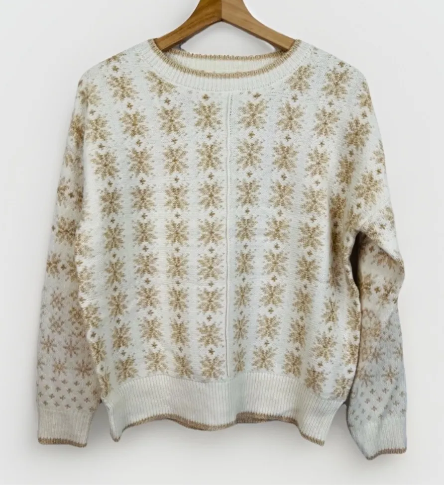 Workshop Republic Clothing Womens Sweater Size S Cream Gold Fair Isle Knit Metallic Thread Cozy Chic... Show more