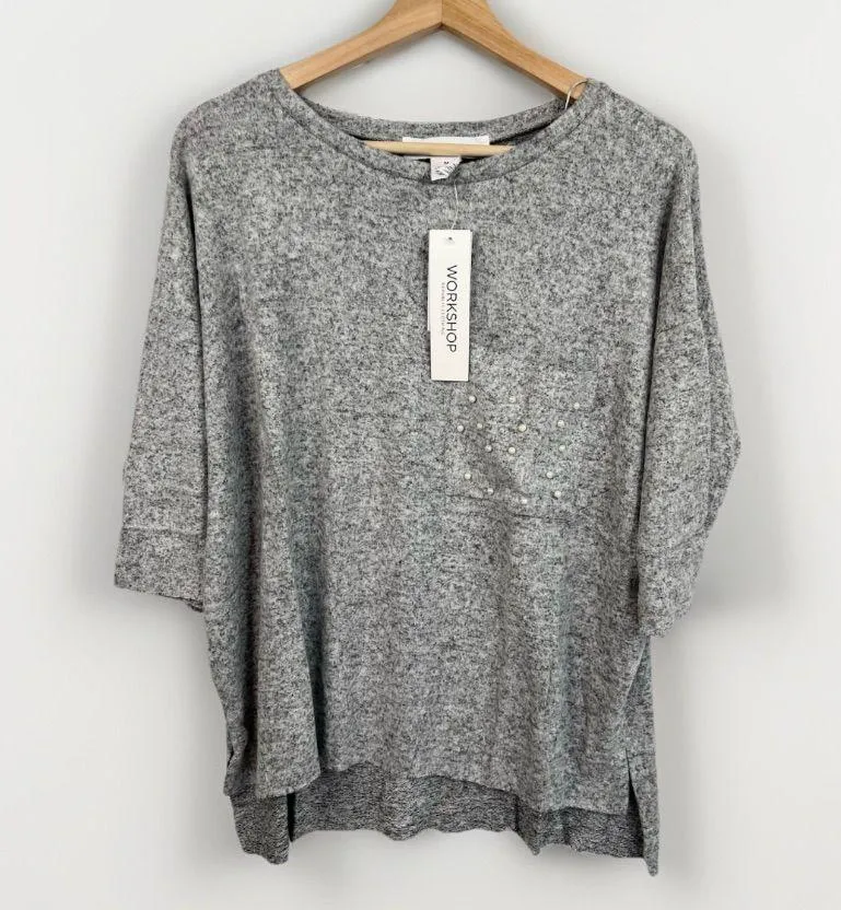 NWT WORKSHOP Womens XS Heather Grey Pearl Knit Top Athleisure Casual Condition: New with tags Size:... Show more