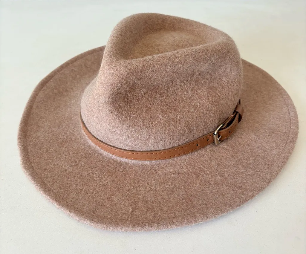 World Market 100% Wool Fedora Western Cowboy Hat Tan Wide Brim Womens Size S 22” - $35 - From Tao