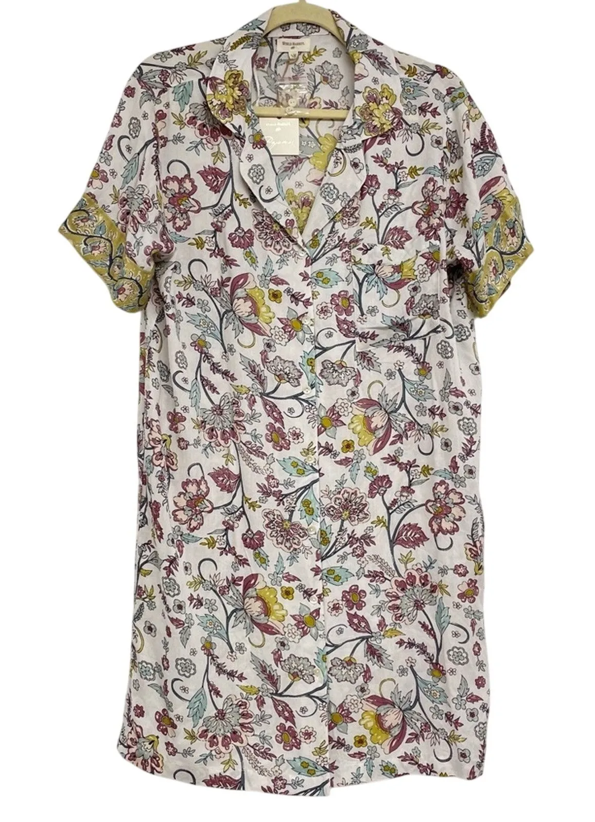 World Market Pajamas Floral Short Sleeve Button Down Shirt Dress Sleepwear M White Size M - $28 New With Tags - From Lisa