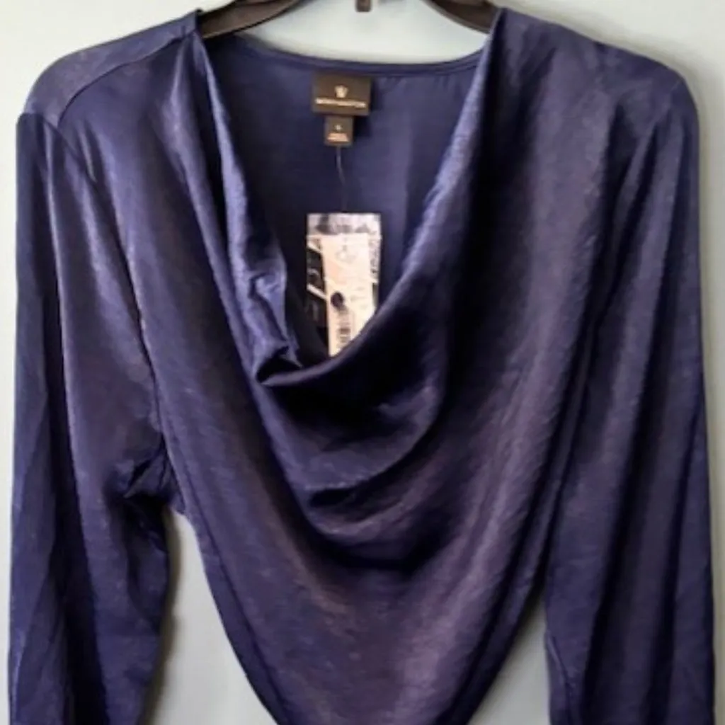This is a new-with-tags Worthington blouse for women in size Large. The blouse is in a navy blue col... Show more