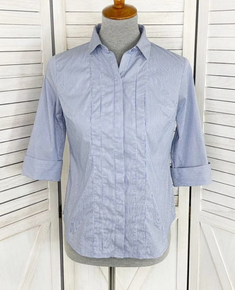 Worthington Petite Striped Faux Pleat Button Front Shirt Size Petite Small Blue & white micro str... Show more