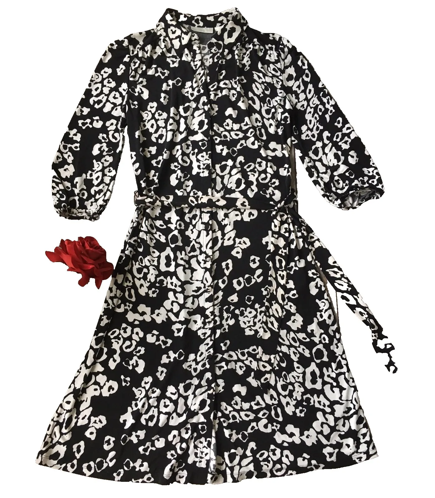 Worthington Shirt Dress S 4 6 Button Up Tie Waist Fit Flare Animal Print Office Black Work Pre-owne... Show more