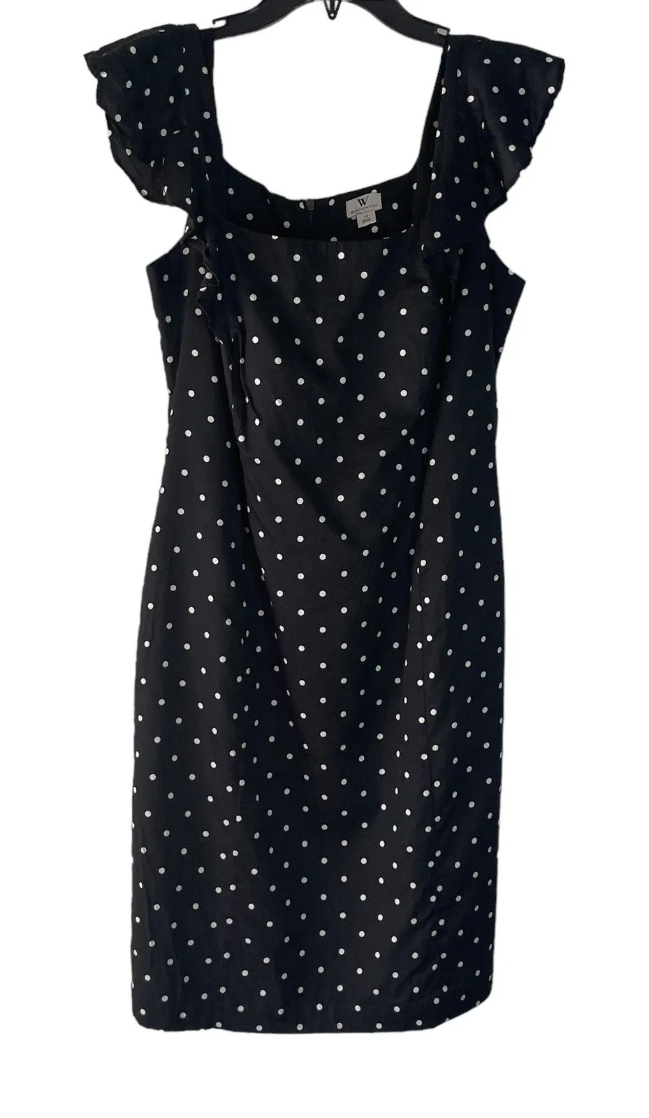 Worthington Size 14 XL Black White Polka Dot Ruffle Sleeve Black Dress Square neck Ruffle short s... Show more