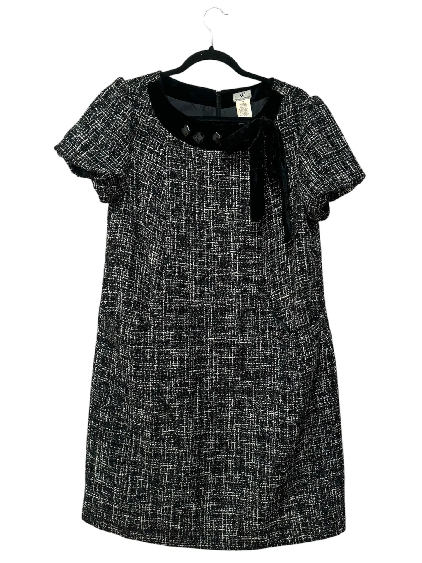 Worthington tweed dress Size 14 In good condition Short sleeve Velvet, jeweled neckline Front poc... Show more