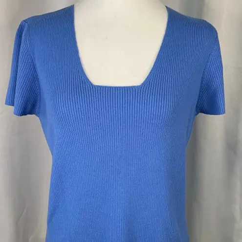 Two lightweight sweaters in vibrant royal blue and off-white colors, featuring short and 3/4 sleeves... Show more