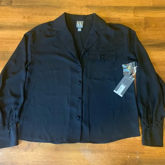 Worthington XS NWT 1 pocket button up sheer black dress blouse shirt long sleeve - $23 New With Tags - From Tiffany