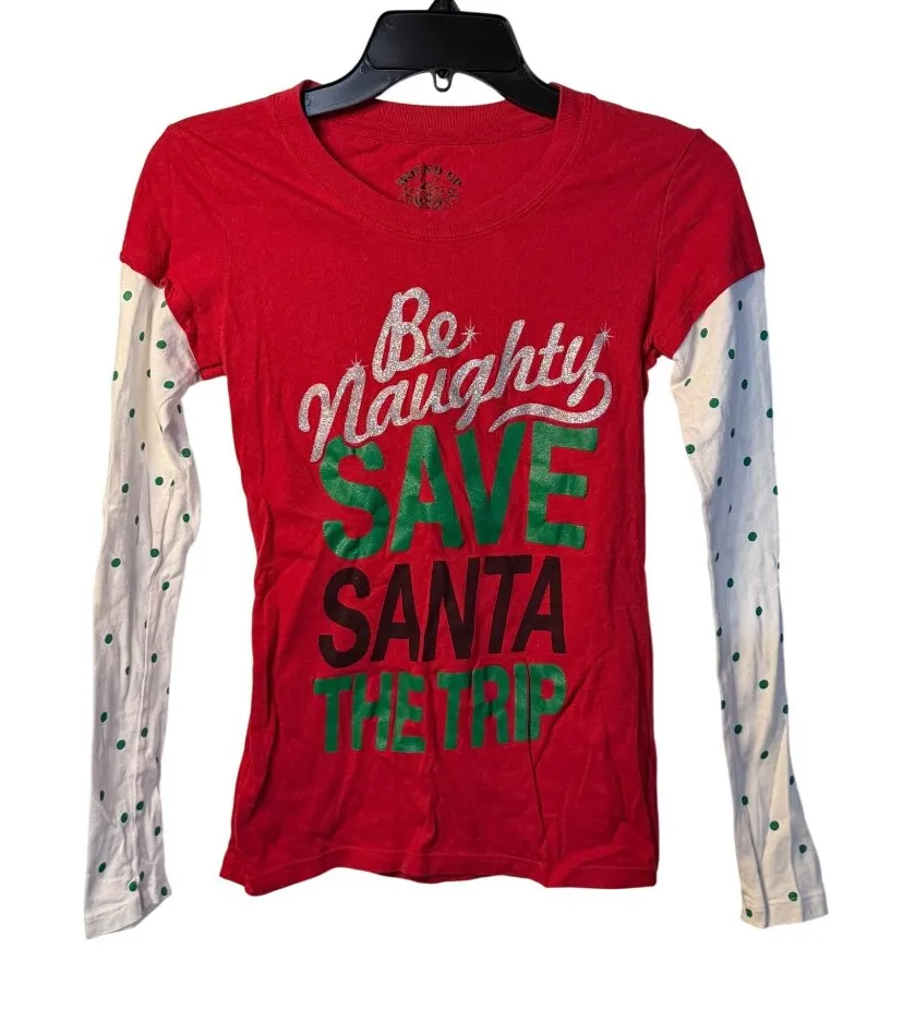 This festive shirt adds a playful touch to holiday attire, featuring a "Be Naughty This Wound Up women’s long sleeve Christmas shirt features the playful “Be Naughty, Save Santa the Trip” graphic — perfect for holiday parties, cozy winter days, or gifting. Soft, comfortable, and festive, this women’s size Small tee adds humor and cheer to any Christmas outfit. ✔️ FEATURES • Fun “Be Naughty, Save Santa the Trip” holiday graphic • Soft, comfy long‑sleeve tee perfect for winter • Women’s size Small with a relaxed fit • Great for Christmas parties, photos, and gifting • Playful festive style with bold holiday colors 📏 SIZE: Women’s Small ( Approx. Pit-2-Pit 16 x 23 Length ) ✅ CONDITION: some light wear, no rips tears or stains Christmas shirt, holiday graphic tee, be naughty save Santa shirt, funny Christmas top, women’s long sleeve Christmas shirt, festive holiday tee, winter graphic shirt, Santa humor shirt, Christmas party outfit, novelty holiday shirt, Wound Up brand shirt, women’s size small Christmas top. #christmasshirt #holidaytee #funnychristmas #santashirt #festivestyle #winterfashion #holidayoutfit #graphictee #womensfashion #christmasgif Temp1