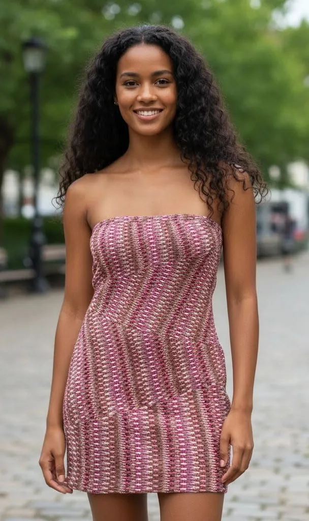 Unleash your inner radiance with this stunning strapless mini dress. A captivating textured design, alive with a blend of purple, pink, and brown hues, creates a visually striking statement. The bodycon silhouette hugs your curves, ensuring a flattering and confident fit. The inner lining adds a touch of luxury and comfort, making it perfect for dancing the night away. Imagine yourself turning heads at a cocktail party, radiating confidence at a club, or making a bold statement at a special evening event. This dress is your ticket to unforgettable moments. Style: Mini, Bodycon Dress Length: Short Color: Purple Department: Women Sleeve Length: Sleeveless Pattern: Geometric Occasion: Party/Cocktail Material: Spandex, Rayon Character: Party Girl, Cocktail, Club, Radiant, Confident Fabric Type: Woven Season: Spring, Summer, Fall Sleeve Type: Strapless Keywords: strapless mini dress, bodycon dress, party dress, club dress, cocktail dress, purple dress, pink dress, woven dress, textured dress, womens dress, wow couture, mini dress, strapless dress, sexy dress, going out dress