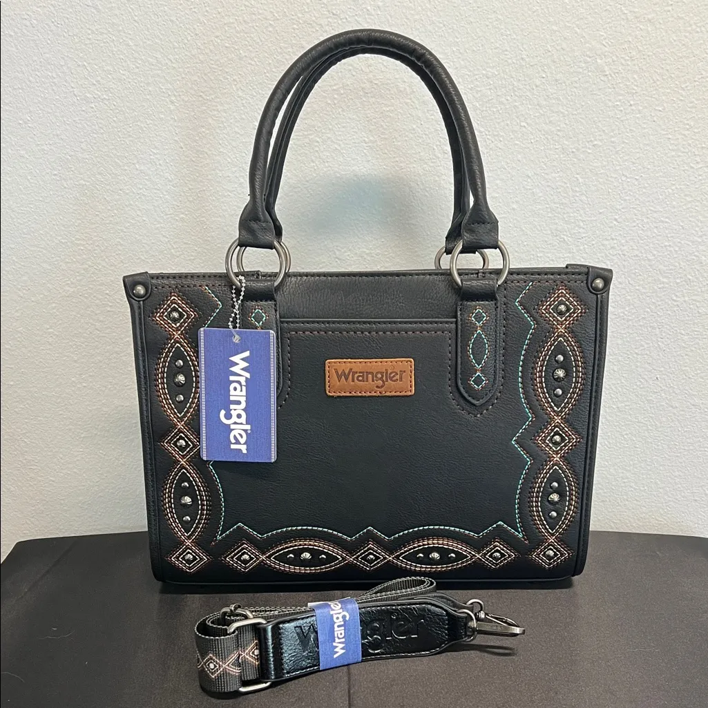 🤎 Add’l Details: Embroidered w/ metal studs outside 1 zipper pocket in the inside 2 open pock... Show more
