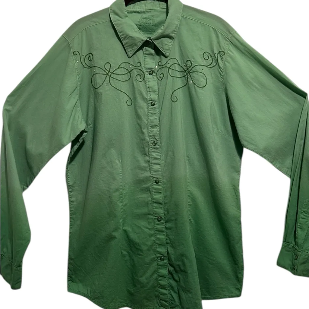 Wrangler Twenty X Women 's Ombré Green Pearl Snap With Stitching Design & Rhinestone Accents Lightwe... Show more