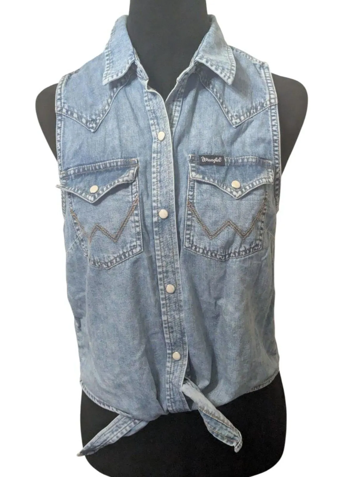 This is the missing link your outfit needs to go from standard to sensational! This authentic Wrangler Retro sleeveless denim shirt perfectly merges classic Western style with Y2K trendy flair. The light wash, pearlized snap buttons, and signature 'W' embroidery on the chest pockets give you that genuine cowboy-chic aesthetic. The moment you tie the front knot and layer it over a crop top or fitted tee, you’ll realize how versatile and cool this piece truly is. It’s made from 100% cotton, ensuring it feels just as sturdy and comfortable as vintage denim should. The freedom of choice is yours, but securing a perfect layering piece like this is always the best move. Don’t miss out on adding this essential piece of country-core fashion to your collection.