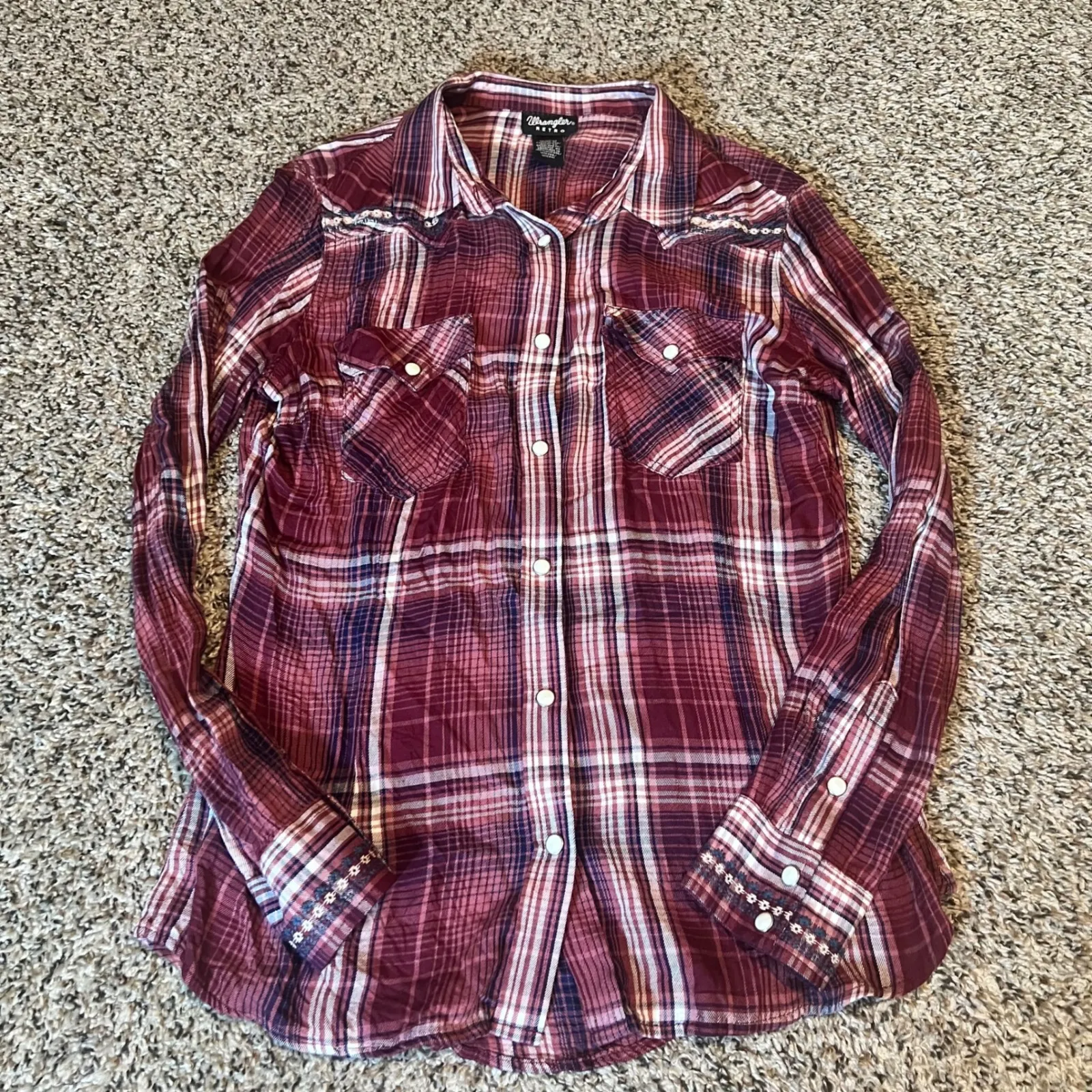 Wrangler Retro western plaid shirt for women in a maroon hue. This stylish button-down features clas... Show more