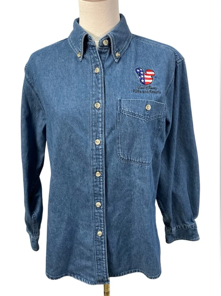Wrangler Walt Disney Parks & Resorts Embroidered Denim Button Up Shirt Womens Small 100% cotton Ex... Show more