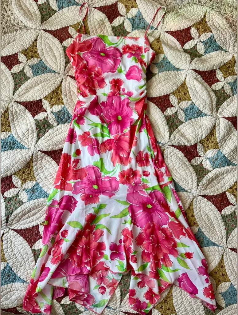 Brand Wrapper. Size M. Perfect condition, smoke free home. #fairycore #cottagecore #y2k #coquette #winx pink floral, fairycore, midi dress, spaghetti straps, flowy, pastel, romantic, vintage-inspired, feminine, boho