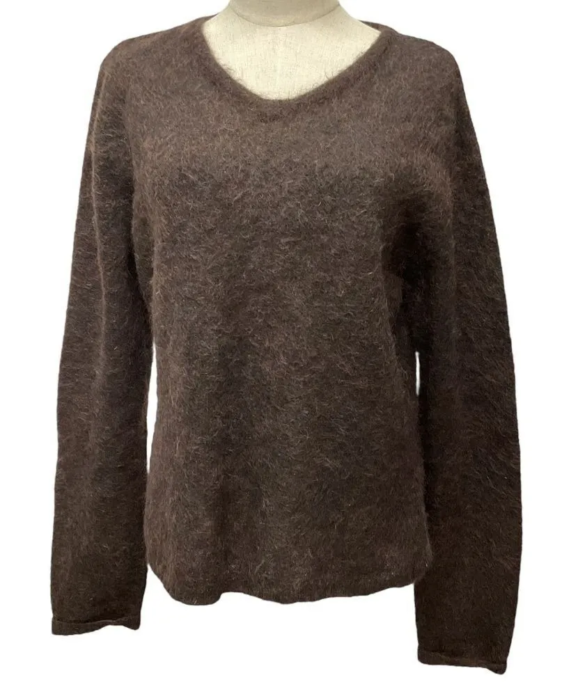Isda & Co Wool Mohair Blend V-Neck Sweater Pullover Long Sleeve Brown Size M V-neckline Long sleeve... Show more