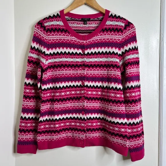 Beautiful button front cardigan sweater from Talbots 70% nylon 30% Lambswool Petite medium Measure... Show more