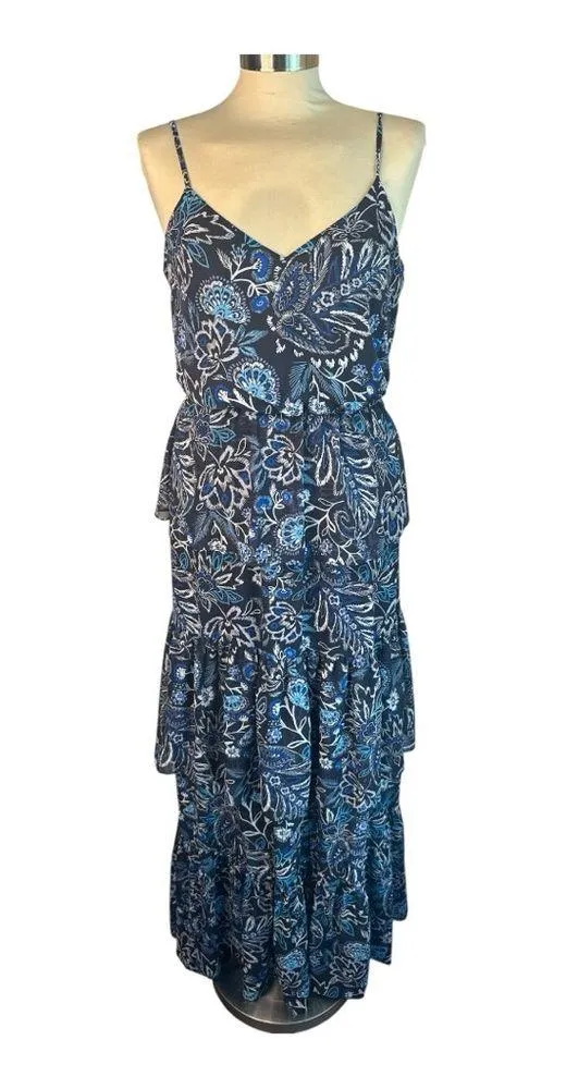 Condition- Preloved Excellent Measurments- Pit to Pit 17", Length 60" Spaghetti Straps Adjustable Straps Partial Lining Hidden Back Zipper Summer Dress, Spring Dress, Brunch Dress, Date Night, Day Date, Ruffles, Blue Foral Elegant blue maxi dress with a floral pattern. Perfect for any occasion.