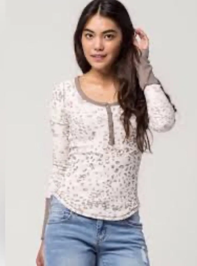 Free People 'Davis' Mottled Thermal Henley Tee, Size S, Excellent condition Details: - Scoop neck,... Show more