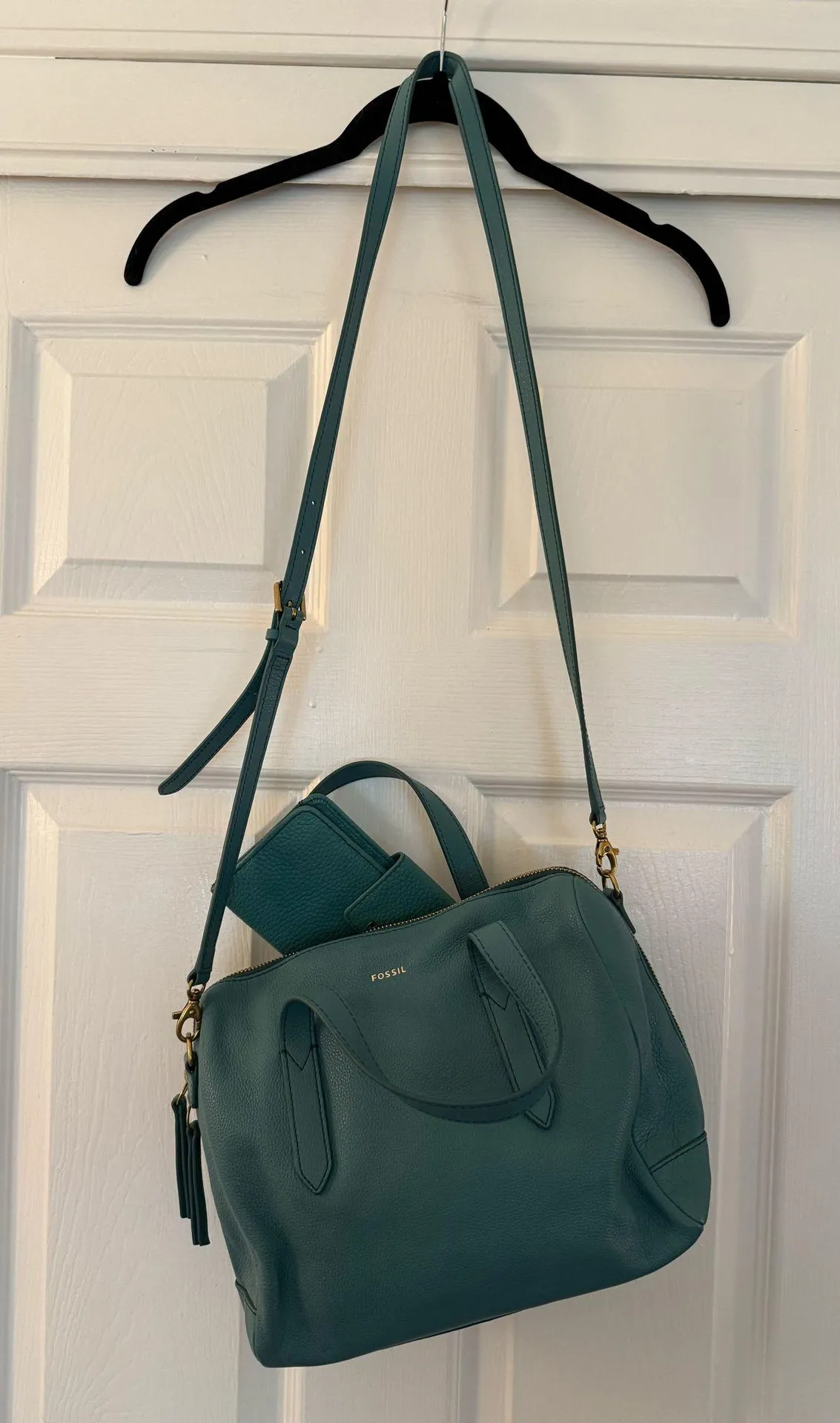 Fossil Purse Leather Teal Crossbody with Matching Wallet Green - $26 (79% Off Retail) - From Ashley