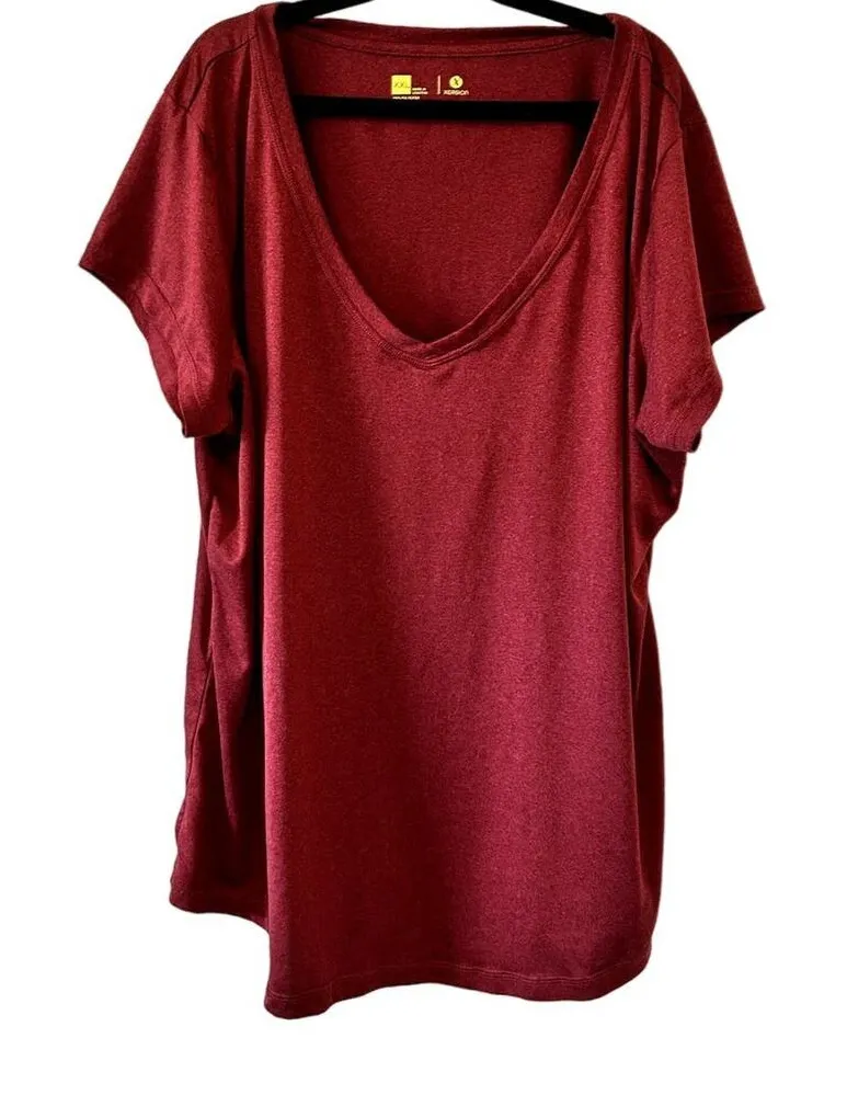 Oh so soft Loose Fitting - perfect for a lounging kind of day. Gently Pre-owned - Good Condition - No flaws discovered Size XXL V Neck 100% Polyester Machine Wash All Season Fits true to size Single Fold Binding