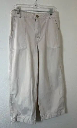 Free People wide leg 100% cotton cropped pant in a neutral beige color with a subtle stripe In exc... Show more