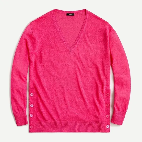 NWT J. Crew v neck sweater side buttons linen Pink Size XS - $32 New With Tags - From Aneta