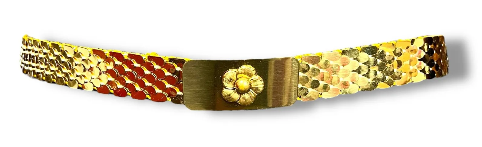 Scales Stretch Belt Flower Buckle Accent Gold Tone Vintage 50s 60s Condition: EUC Description: Stre... Show more
