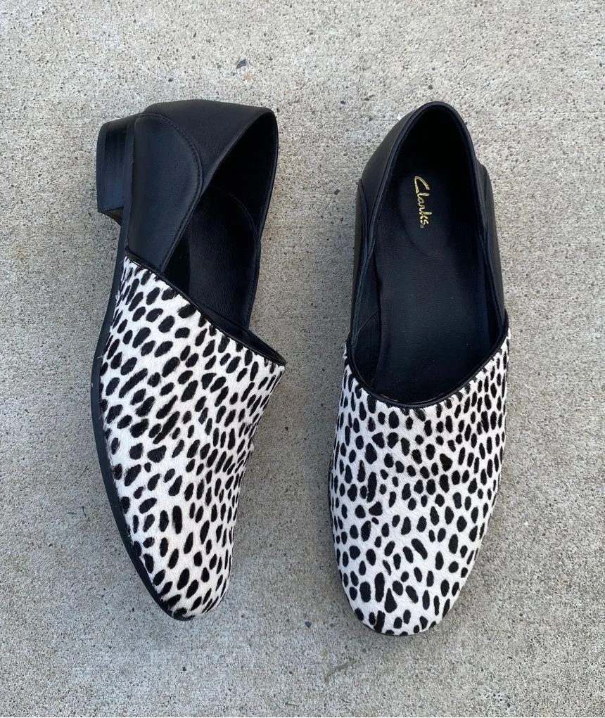 Clarks Pure Viola Flat Loafers Animal Print Calf Hair size 7.5