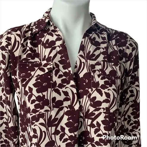 Ann Taylor Long Sleeve V-Neck Floral Print Blouse. Collar with V-Neck opening, button cuffs on slee... Show more