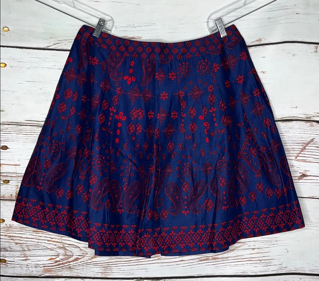 Talbots Woman Petites Size 14WP Blue & Red Paisley Print A-Line Skirt. Partial Elastic Waistline. Si... Show more