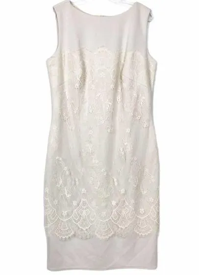 Tadashi shoji sleeveless cream dress with lace overlay Size 16. Sz 16. New with tags Thanks for ch... Show more