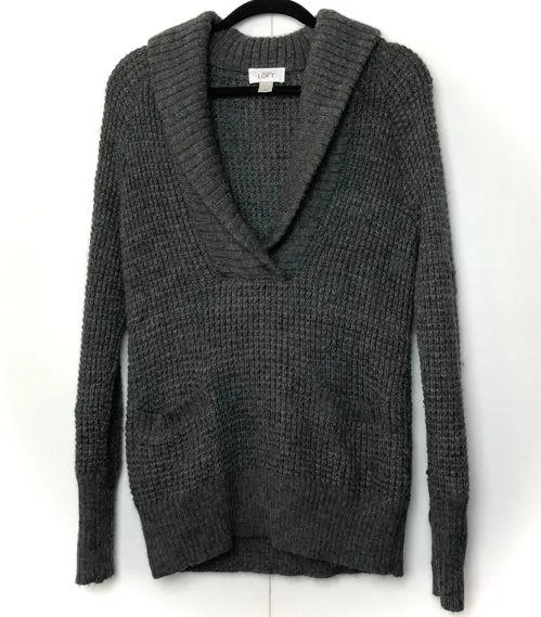 Ann Taylor LOFT Chunky Deep V Neck Sweater. Wool Angora Blend. Deep V Neck Collar. Long sleeves. Rib... Show more