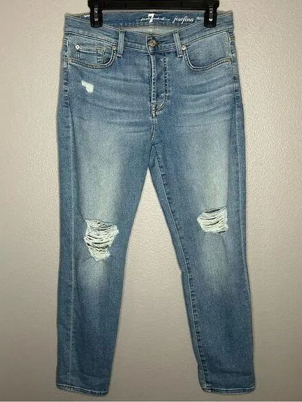 7 for all Mankind josefina jeans Skinny boyfriend Distressed Button fly Size 28 Good preowned con... Show more