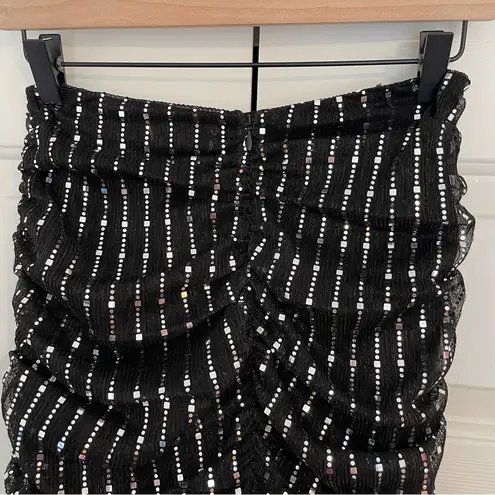 NWT Lovers + Friends Mini Skirt Sz Small Black Silver embellishments Ruched detail Wrap front Zip... Show more