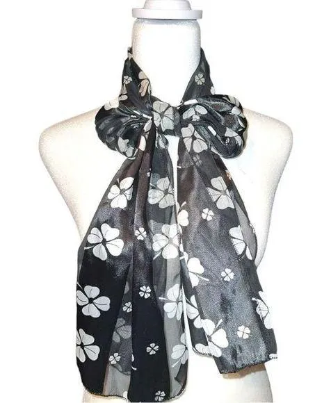 Beautiful black scarf with white 4 leaf clover print! Brand new! - $14 - From linda