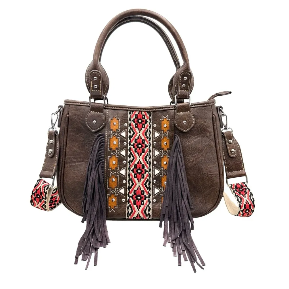 Aztec Tribal Print Fringe Western Handbag Purse with crossbody strap Brown - $56 - From mood