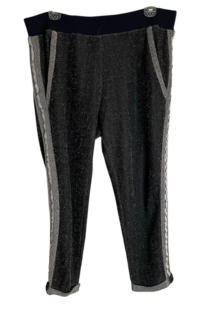 Cozy and stretchy pants with white trim on the sides. Also has pockets. 33.25" length 24" inseam re... Show more