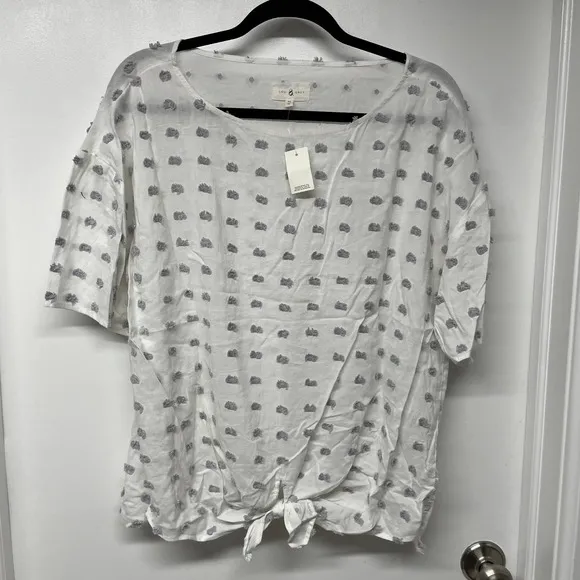 Lou & Grey Ann Taylor LOFT White Knot Short Sleeve Textured Blouse Size Medium New with tags. Tie f... Show more