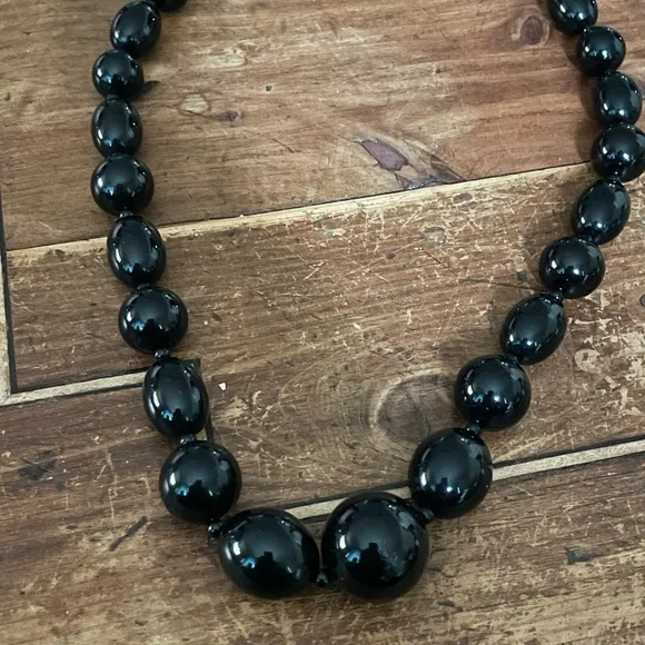 Lustrous graduated black beads adorn this stunning necklace by Liz Claiborne. Chunky black beads ar... Show more