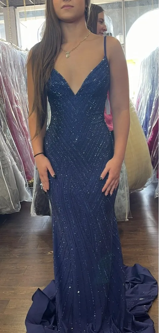 Sherri Hill Navy Prom Dress worn. Originally $865. Worn 1 time for 4 hours! In perfect condition. H... Show more